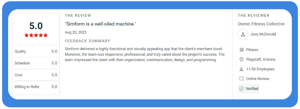 Solution: Simform developed a cross-platform solution with real-time data synchronization between wearables and the trainer dashboard, enabling precise heart rate zone tracking and VO2 max calculations.
