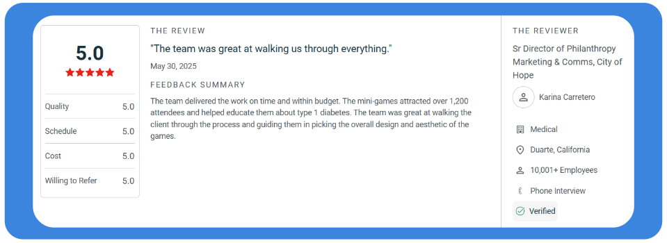 Clutch Score: 5/5 (16 reviews) Location: Los Angeles, CA