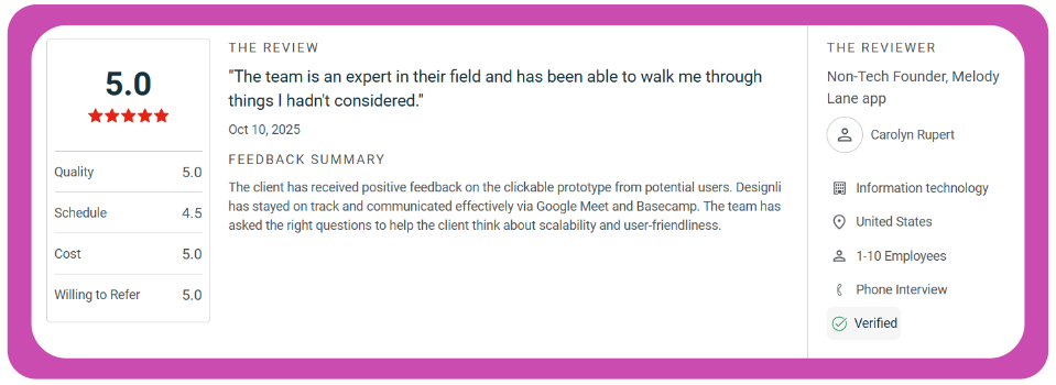 The differentiator is their dedicated team model. Unlike agencies that rotate developers across projects, Designli assigns full-time, single-client teams that act like your in-house product squad. Your designer isn't juggling three other projects. Your engineers aren't context-switching between codebases.